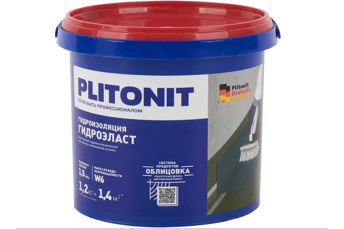Эластичная гидроизоляционная мастика PLITONIT ГидроЭласт -14 Н007016 - это готовая к использованию эластичная полимерная гидроизоляция. Предназначена для устройства сплошной бесшовной гидроизоляции строительных конструкций и сооружений внутри и снаружи зданий (душевые, в том числе без поддона, ванные, туалеты, прачечные и другие влажные помещения) перед производством дальнейших облицовочных работ. Может применяться для гидроизоляции балкона под дальнейшую облицовку плиткой.