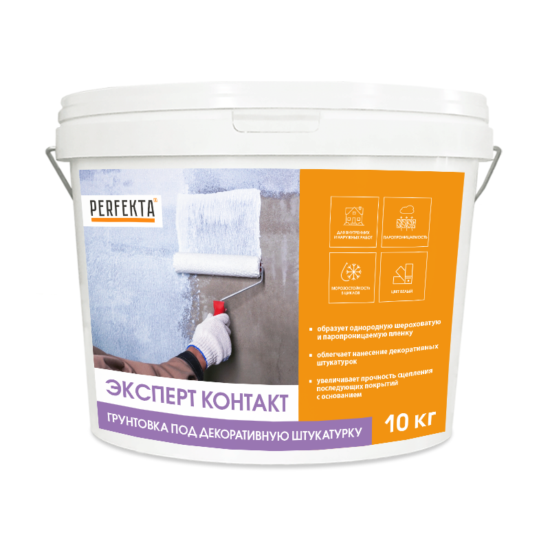 Рекомендуется для применения в системах утепления фасадов PERFEKTA "Термотек МВ" и "Термотек ППС". А также перед нанесением декоративных штукатурок ("Шуба" и "Короед") на любые основания.