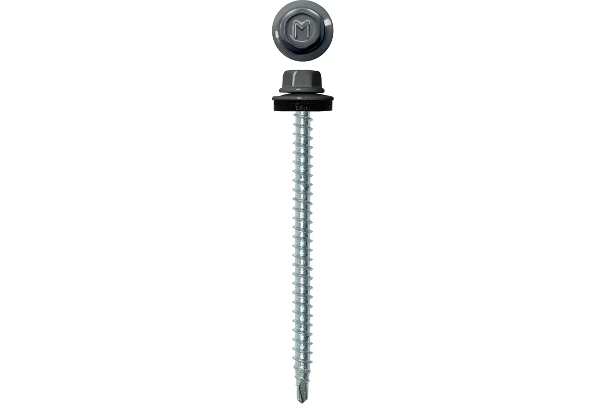 • Металлическая шайба с ЕРDM прокладкой 2,5 мм обеспечивает плотное прилегание профилированного металла (кровли) к деревянной обрешетке, а также препятствует попаданию влаги;