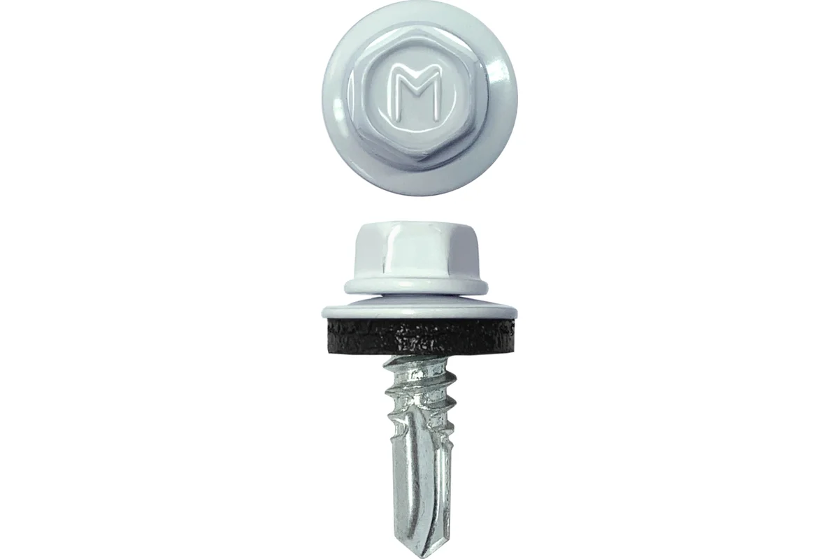 Саморез по металлу Daxmer 5,5x19 RAL 9003 250 шт. 304283 - это крепежное соединение, которое предназначено для надежной фиксации кровельного профлиста к обрешетке из металла. Изделие изготовлено из стали С1022, имеет цинковое антикоррозийное покрытие. Шестигранная головка с EPDM-уплотнителем толщиной 2.8 мм. Цвет - сигнальный белый.